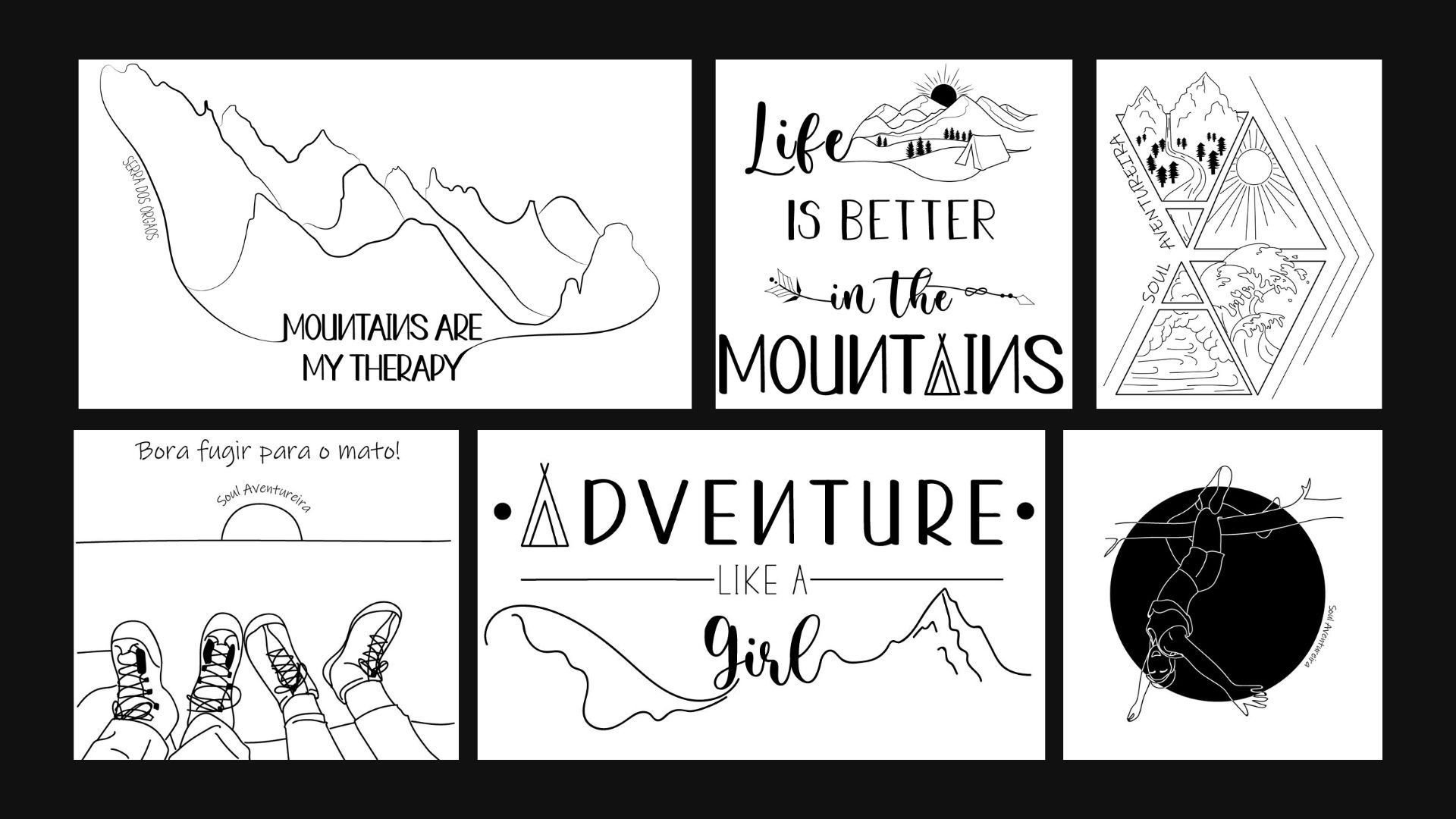 The artist Diva Pinho created four prints for the hiking influencer Soul Adventurer. The designs were inspired by the experiences and emotions that the owner of Soul Adventurer wanted to convey or represent in her shirts. The prints were created using Illustrator, with two designed in 2021 and two in 2024.